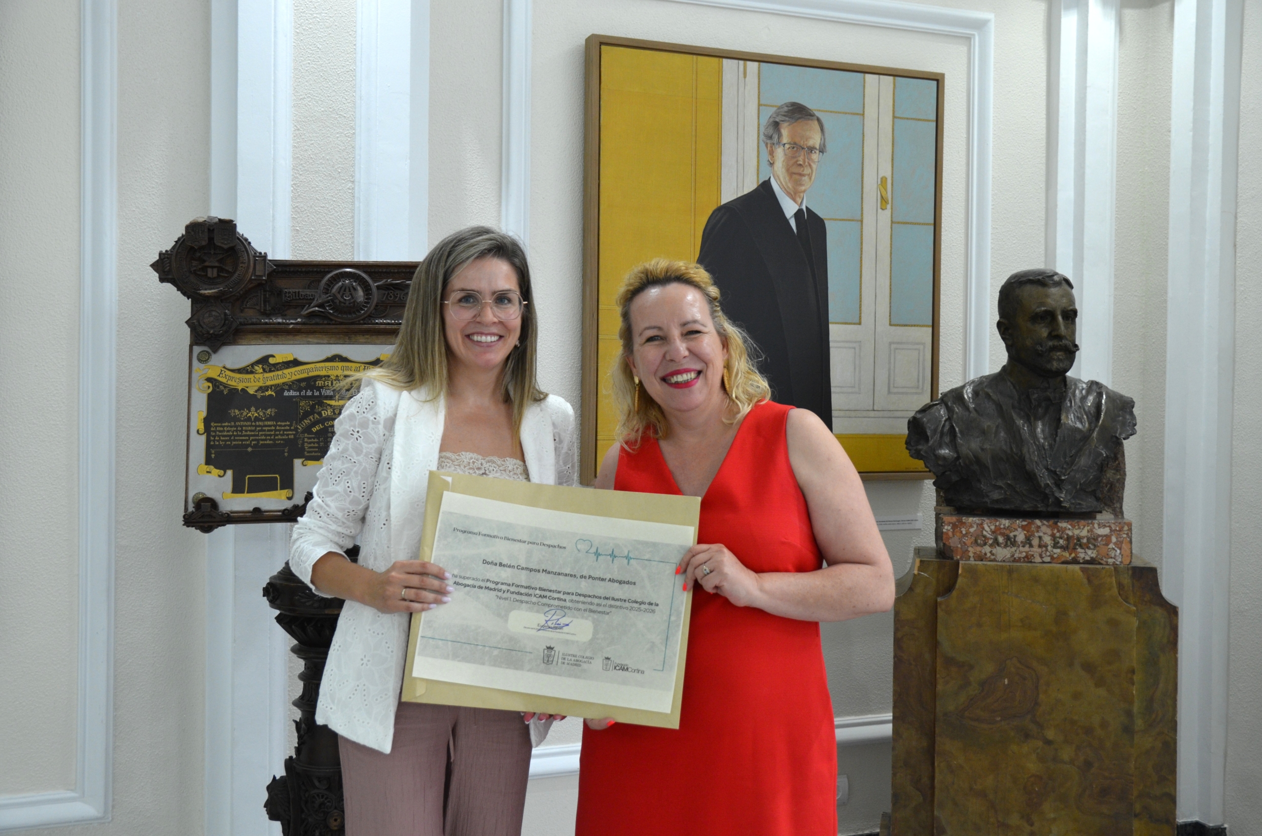 La vicedecana del ICAM, Isabel Winkels, y la diputada de la Junta de Gobierno, Ana Buitrago, han sido las encargadas de entregar los diplomas y el distintivo “Nivel 1: Despacho Comprometido con el Bienestar”, un sello otorgado por la Fundación ICAM que acredita el compromiso de las firmas con el cuidado del bienestar integral de sus equipos y su apuesta por la mejora continua en sus entornos laborales.